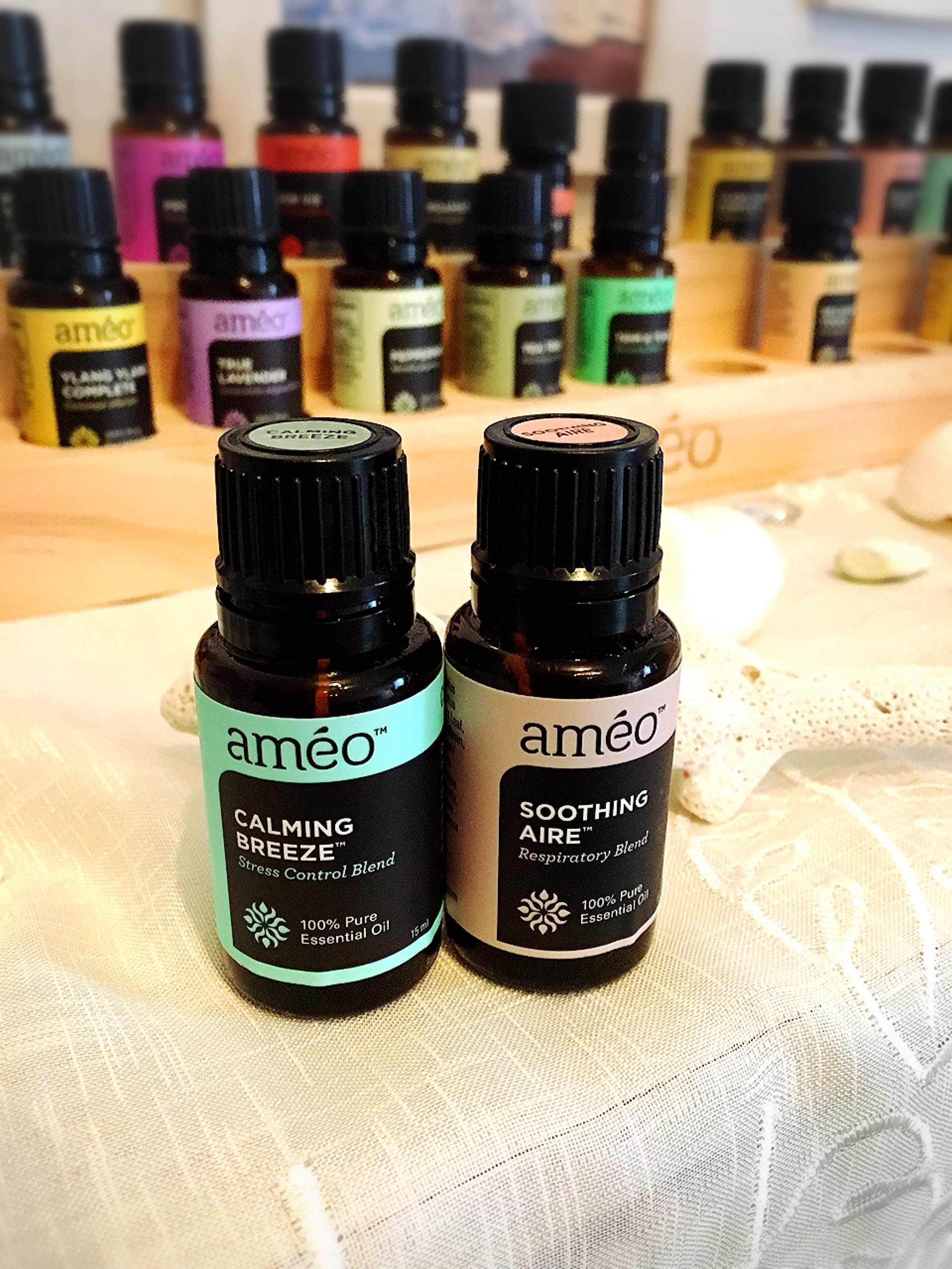 左のカーミングブリーズは、ストレスコントロールブレンドと言われる程のエッセンシャルオイルで、