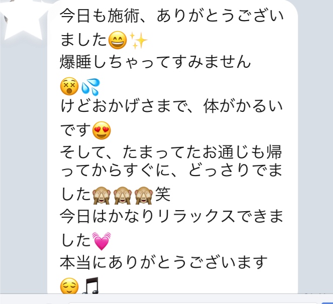 先日のお客様は施術中にトイレに2回も行かれて、帰宅後にお通じがスッキリされたそうです!